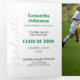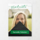 Un elegante guión anuncia a su graduado sobre su foto favorita de último año en la portada. Espacio para su nombre en la portada, y todos los detalles de la ceremonia dentro junto con dos fotos más. Espacio en la parte posterior para un mensaje de agradecimiento a amigos y familiares. Diseño disponible en los colores escolares rojo, naranja, púrpura, verde, azul, naranja quemado, granate y negro. Productos a juego disponibles.