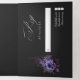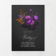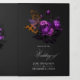 Invitación a bodas góticas de Halloween con acentos de morado en negro y naranja. Este es un paquete completo en uno con detalles de invitados y rsvp para que el destinatario pueda cortar el último panel y sacarlo.