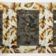 Invitación Tríptica Hojas doradas beige y negro glamour boda de otoño