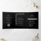Moderno todo en una invitación de boda triple pliegue con un diseño negro minimalista con sus nombres en un gran tipo de letra a lo largo del lado izquierdo y superior. El panel de la tarjeta del recinto tiene un código QR opcional. Puede quitar el código QR en la herramienta de edición de diseño. Este diseño es lo suficientemente sencillo para un boda formal, pero hace una declaración audaz.
