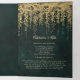Un ilustracion de ramas arbóreas con exuberante vegetación y follaje colgante, recubierto digitalmente de oro, sobre un brillante fondo verde esmeralda, decora este verano de primavera todo en una invitación a la boda con un tema de bosque encantado. Una invitación elegante y moderna para un boda de cuento de hadas, es la invitación perfecta para una boda en tres ocasiones que incluye amplio espacio para toda su información boda, incluyendo regalos y una corta cronología del día. Simplemente doblar, sellar y enviar. Perfecto para novias que adoren el entorno de un cuento de hadas, el bosque de hadas o el tema del hadas y el verde esmeralda.