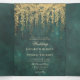 Un ilustracion de ramas arbóreas con exuberante vegetación y follaje colgante, recubierto digitalmente de oro, sobre un brillante fondo verde esmeralda, decora este verano de primavera todo en una invitación a la boda con un tema de bosque encantado. Una invitación elegante y moderna para un boda de cuentos de hadas, es la invitación perfecta para una boda en tres ocasiones que incluye amplio espacio para toda la información de sus bodas, incluyendo regalos y una corta cronología del día, así como una foto. Simplemente doblar, sellar y enviar. Perfecto para novias que adoren el entorno de un cuento de hadas, el bosque de hadas o el tema del hadas y el verde esmeralda.