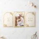 Invitación Tríptica Laurel de oro deja a crema Boda