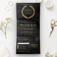 Invitación Tríptica Laurel de oro negro mínimo todo en un Boda