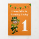 Una invitación adorable para tu hijo o chicas especiales de primer cumpleaños con un leprechaun con el pelo jengibre haciendo una broma para encontrar un shamrock afortunado. Está usando un vibrante traje de oro verde y falso, y tiene naranja y un racimo verde encima de su cabeza y confeti de color arcoiris a su alrededor. El interior incluye una invitación y dos juegos. La primera es la cápsula del tiempo que se abre en su 18 cumpleaños y la segunda es un juego de los primeros. Asegúrese de pedir a sus huéspedes que completen la cápsula del tiempo antes del fiesta y que sólo jueguen el primer juego con todos en su cumpleaños Childs.
