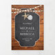 Sorprenda a sus huéspedes con esta elegante boda temática de una sola playa, que presenta una tipografía moderna en un marco rústico de madera y un elegante marco de pizarra con una tarjeta RSVP desmontable. Simplemente agregue los detalles de su evento en esta plantilla fácil de usar y adorne esta tarjeta con su foto favorita para convertirla en una invitación única y personalizada.