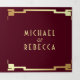 Invitación Tríptica Marco Art Deco Borgoña Oro QR Boda de código