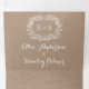 Marco floral blanco con las iniciales invitación a la boda triplicada. Los elementos de esta invitación a la boda son el hermoso marco floral blanco con sus iniciales y las fuentes en el fondo de estilo de papel kraft.