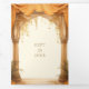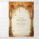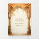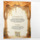 Sorprenda a sus invitados con esta elegante invitación de una boda india, con bellos arcos decorados con cortinas y flores de oro. Tipografía moderna de oro con código QR para RSVP en línea. Simplemente agregue los detalles de su evento en esta plantilla fácil de usar y adorne esta tarjeta con su foto favorita para convertirla en una invitación única.