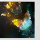 Mariposas brillantes nocturnas sobre fondo negro abstracto. Mariposa Luminosa.
