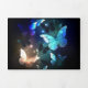 Fabuloso, brillante, azul y amarillo, mariposa nocturna sobre fondo oscuro.