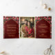 Invitación Tríptica Maroon Red Roses Floral Gold Indian Boda