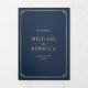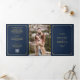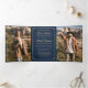 Invitación Tríptica Minimalist Photo Navy Blue Gold QR Code Wedding