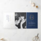 Invitación Tríptica Monograma boda de la hoja de oro azul oscuro RSVP
