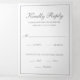 Tradicional y elegante, todo en una plantilla de invitación de boda con tarjeta rsvp y tarjeta adjunta, haciendo que esta suite de invitación sea cómoda y económica. La invitación a la boda tiene su primer monograma y sus nombres en una elegante caligrafía dentro de un delgado borde junto con su foto favorita en la parte posterior. La tarjeta postal RSVP tiene tu dirección postal en la parte trasera y tus invitados simplemente te cortan y te devuelven el correo. NOTA: Se requiere franqueo de primera clase para la postal RSVP. Los sellos postales no serán suficientes debido al tamaño. Esta invitación clásica con texto gris sobre blanco es perfecta para un boda formal.