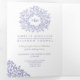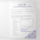 Invitación todo en uno del boda de arte botánico de hojas de cultivo. Personalice esta invitación de matrimonio de respuesta desmontable con sus propios detalles de la ceremonia de boda, horario, alojamiento y otra información, así como opciones de comida, respuestas. Diseño sencillo de hojas de color azul violeta que rodea sus propias iniciales de monograma sobre un fondo blanco. Hay disponibles otros colores y elementos bodas coincidentes. © Dibujo y diseño original de la hoja de Sarah Trett para www.mylittleedenweddings.com en Zazzle.