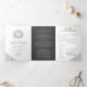 Invitación y respuesta de un boda de arte botánico de hoja muy gris oscuro y creciente. Personalice esta invitación de matrimonio de respuesta desmontable con sus propios detalles de la ceremonia de boda, horario, alojamiento y otra información, así como opciones de comida y tarjeta de respuesta. Diseño simple de hojas monotónicas en torno a sus propias iniciales monográficas. Hay disponibles otros colores y elementos bodas coincidentes. © Dibujo y diseño original de la hoja de Sarah Trett para www.mylittleedenweddings.com en Zazzle.