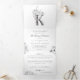 Letra 'K' Monograma Hermosa Invitación Tri-Fold Boda Floral Esbozada.