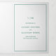 Sencillo tono de joyería verde esmeralda todo en una plantilla de invitación a boda con tarjeta rsvp y tarjeta de gabinete adjunta, haciendo que esta suite de invitación sea cómoda y económica. La invitación a la boda presenta un diseño moderno y elegante con su monograma de dos letras en la parte superior y sus detalles rodeados por un delgado borde. Todo el texto está en verde esmeralda, sobre un fondo blanco y el texto y el borde pueden cambiarse a cualquier color que desee. La tarjeta postal RSVP tiene tu dirección postal en la parte trasera y tus invitados simplemente te cortan y te devuelven el correo. NOTA: Se requiere franqueo de primera clase para la postal RSVP. Los sellos postales no serán suficientes debido al tamaño. Una moda y un diseño de diseño, ideal para una pareja minimalista.