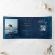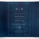 Invitación Tríptica Monograma y Boda azul elegante de la Marina Fronte