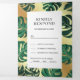 Invitación Tríptica Monstera tropical verde y dorada deja Boda