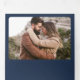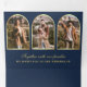 Invitación Tríptica Navy Blue Gold Minimal Arch Photo QR code Wedding