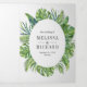 Disfrute de esta elegante invitación a una boda tropical con una tipografía moderna y unas hojas de acuarela rústicas con una tarjeta RSVP desmontable. Simplemente agregue los detalles de su evento en esta plantilla fácil de usar y adorne esta tarjeta con sus fotos favoritas para convertirla en una invitación única.