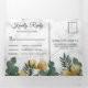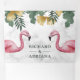 Invitación Tríptica Palm Tropical Mármol Blanco Flamingo Pareja Boda