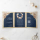 Invitación Tríptica Pampas Neutral Beige Earthy Floral Navy Wedding