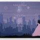 Invitación Tríptica Pie azul rosa y pizarra París fuegos artificiales