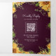 Invitación Tríptica Plum Purple Sunflowers Mason Jar QR Code Boda