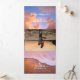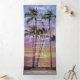 Invitaciones triples plegables de boda con palmeras tropicales al atardecer que incluyen la invitación de boda, tarjetas de respuesta, RSVP, detalles y foto de la pareja. El interior presenta una puesta de sol de palmera y el exterior es una playa al atardecer con la marea entrando. Ideal para una boda de destino en las islas, Hawaii, costa de California, Florida o México. ¡Si necesita ayuda con el diseño, envíeme un correo electrónico a tkatz@me.com