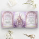 Invitación Tríptica Purple Floral Fairytale Castle All in One Wedding