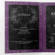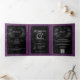 Invitación Tríptica Raven negro gótico y Boda morado Rosas negros