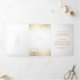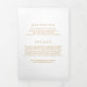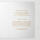 Invitar a la familia y amigos con esta elegante invitación a la boda tripartita. Presenta falsos puntos de Relieve metalizado dorado, escritura elegante y tipografía moderna. Personalice agregando nombres, fotos y otros detalles. Esta invitación a las bodas de oro y blanco es perfecta para cualquier tema boda y temporada.