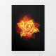 Rosa en llamas del fuego y la llama sobre fondo negro.