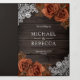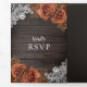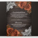 Sorprenda a sus huéspedes con esta elegante invitación de boda, que incluye hermosos rosas rústicos naranjas y encaje con una tarjeta postal RSVP desmontable. Simplemente agregue los detalles de su evento en esta plantilla fácil de usar y adorne esta tarjeta con su foto favorita para convertirla en una invitación única.