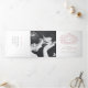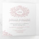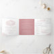 Invitación Tríptica Rosa polvoriento monograma hojas boda todo en uno
