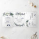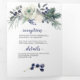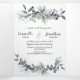 Invitación Tríptica Rosas blancas, bayas azules, Boda de agujas de pin