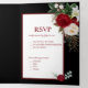 Invitación Tríptica Rosas borgoñas y blancas, sobre fondo negro