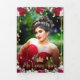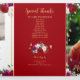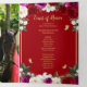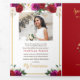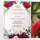 Sorprende a tus invitados con esta elegante y moderna invitación de quinceañera de tres solapas que presenta rosas de acuarela rojas, fucsia y blancas lujosas pintadas con exquisito detalle y adornadas con una corona de purpurina dorada falsa, caligrafía de purpurina dorada falsa y mariposas de lámina dorada falsa. Te proporciona espacio amplio para compartir 3 fotos de la hermosa cumpleañera y toda la información para su día especial, incluyendo la hora y el lugar de la misa, la hora y el lugar de la recepción, el nombre de su corte (padrinos, chambelanes y damas) e información sobre sus padrinos. Cambia fácilmente el texto utilizando las casillas de la plantilla. Si necesitas cambiar las fuentes o los colores o reposicionar los elementos, desplázate más allá de las casillas de la plantilla y haz clic en "Editar con la herramienta de diseño". Diseñado como parte de mi conjunto de celebración de quinceañera Dramatic Rose Red. Asegúrate de explorar los otros artículos de esta colección para crear un look sofisticado y coordinado para tu día especial. Si necesitas ayuda para personalizar esta invitación o deseas que cree productos adicionales que coincidan, por favor