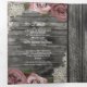 Invitación Tríptica Rosas rosadas polvorientas y Boda de madera gris d