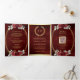 Invitación Tríptica Roses rojos borgoñosos todo en un Boda de código Q