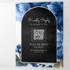 Invitación Tríptica Royal Blue Floral Mason Jar Código QR Boda negro