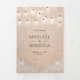 Sorprenda a sus huéspedes con esta elegante invitación a bodas con bombillas de cuerda y encaje blanco con tipografía moderna sobre un fondo rústico de burrega con tarjeta RSVP desmontable. Simplemente agregue los detalles de su evento en esta plantilla fácil de usar y adorne esta tarjeta con sus fotos favoritas lo convierten en una invitación personalizada única.