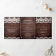 Sorprenda a sus huéspedes con esta invitación rústica de matrimonio de 3 en 1 que presenta un hermoso encaje blanco sobre un fondo de madera de granero vintage con una tarjeta RSVP desmontable. Simplemente agregue los detalles de su evento en esta plantilla fácil de usar y adorne esta tarjeta con su foto favorita para convertirla en una invitación única.