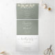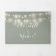 Invitación Tríptica Sage Green String Luces Script Monograma Boda