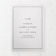 Sencilla plata gris claro todo en una plantilla de invitación a boda con tarjeta rsvp y tarjeta de gabinete adjunta, lo que hace que esta suite de invitación sea cómoda y económica. La invitación a la boda presenta un diseño moderno y elegante con su monograma de dos letras en la parte superior y sus detalles rodeados por un delgado borde. La tarjeta postal RSVP tiene tu dirección postal en la parte trasera y tus invitados simplemente te cortan y te devuelven el correo. NOTA: Se requiere franqueo de primera clase para la postal RSVP. Los sellos postales no serán suficientes debido al tamaño. Una moda y un diseño de diseño, ideal para una pareja minimalista.