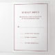 Simple burgundy todo en una plantilla de invitación de boda con tarjeta rsvp y tarjeta adjunta, haciendo que esta suite de invitación sea cómoda y económica. La invitación a la boda presenta un diseño moderno y elegante con su monograma de dos letras en la parte superior y sus detalles rodeados por un delgado borde. Todo el texto está en burdeos, sobre un fondo blanco y el texto y el borde pueden cambiarse a cualquier color que desee. La tarjeta postal RSVP tiene tu dirección postal en la parte trasera y tus invitados simplemente te cortan y te devuelven el correo. NOTA: Se requiere franqueo de primera clase para la postal RSVP. Los sellos postales no serán suficientes debido al tamaño. Una moda y un diseño de diseño, ideal para una pareja minimalista.