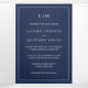 Invitación Tríptica Simple Navy Blue Monograma Elegante Boda